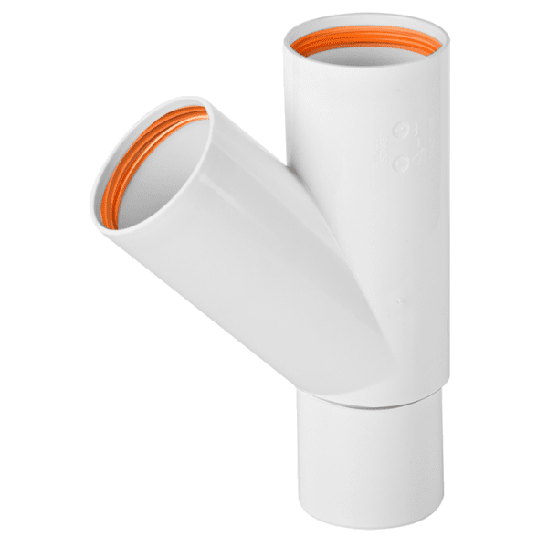 Grenrør 45° Falu Vulk 74890 m/2 muffer hvit PP 50 mm, Faluplast