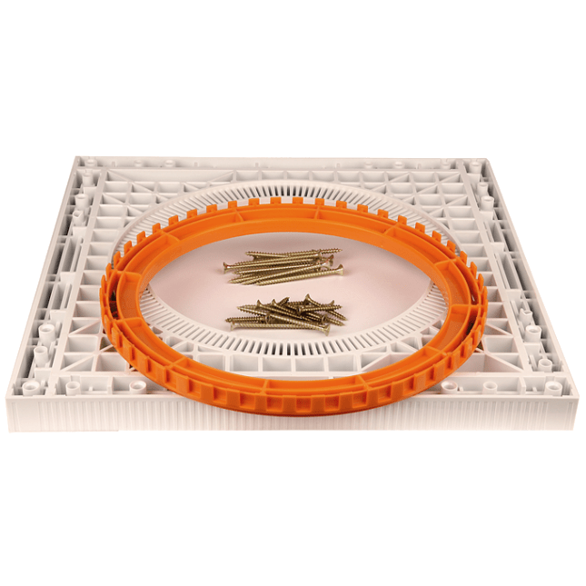Monteringsplate for Faluplast Flexibrunn og Ida, Bodil og Siv. Inklusive skrue og avstandsring 12 mm. Platen er vendbar og passer til både fliser og plasttepper. Ekstra avstandsstykker er tilgjengelig for kjøp RSK 7133831.