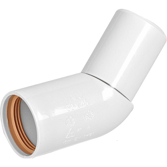Vinkel 45° Falu Vulk 72220 m/1 muffe hvit PP 32 mm, Faluplast