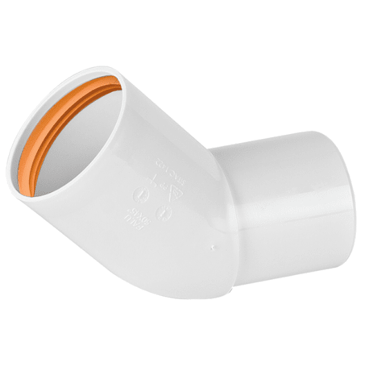 Vinkel 45° Falu Vulk 75040 m/1 muffe hvit PP 50 mm, Faluplast