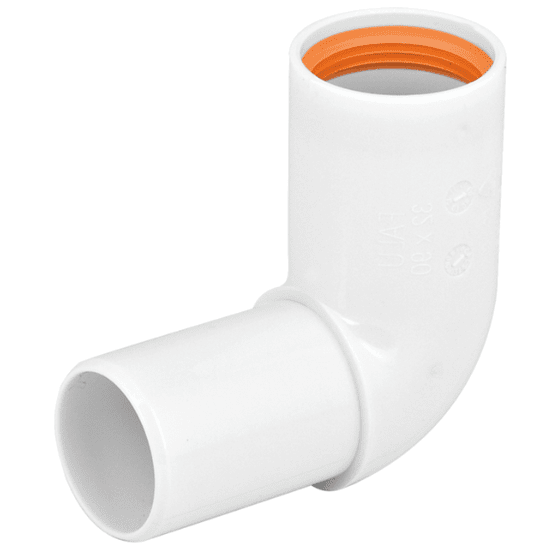Vinkel 90° Falu Vulk 74260 m/1 muffe hvit PP 40 mm, Faluplast