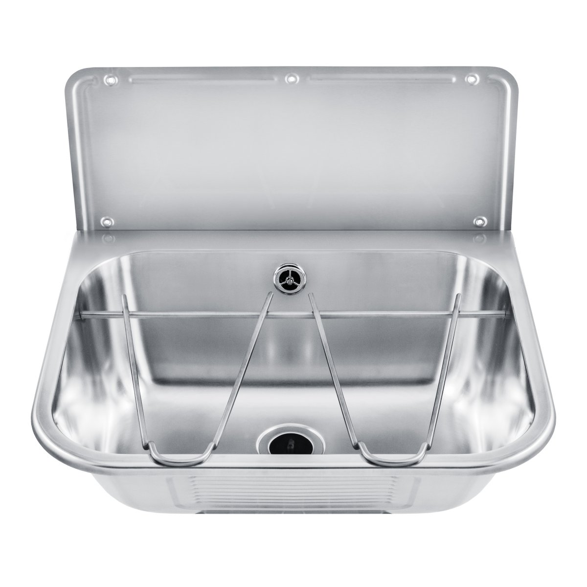 UVK44 Universalvaskekar er et multifunksjonelt vaskekar for veggmontering, med forlenget bakflens og oppbrett mot vegg. Universalvaskekaret leveres komplett med 1 1/2" avløpsventil med plugg og kjede for overløp, bøtterist og veggpanel.