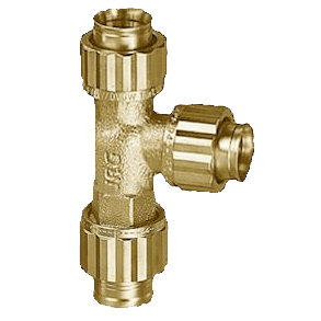 T-røret har kuplinger for tilkobling av JRG Sanipex rør i alle ender.